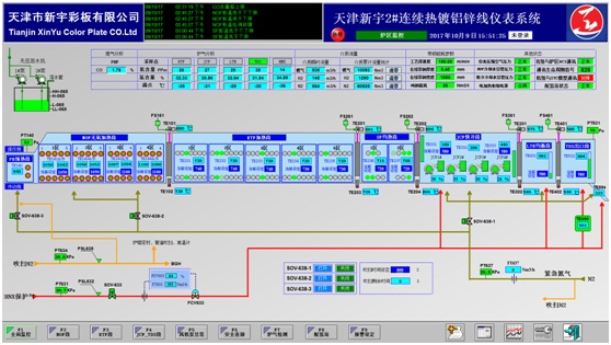 6. 過程控制系統可與生產線電氣自動化系統實行數據交換,可根據板寬、板厚、機組速度、鍍層厚度等設定過程工藝參數。